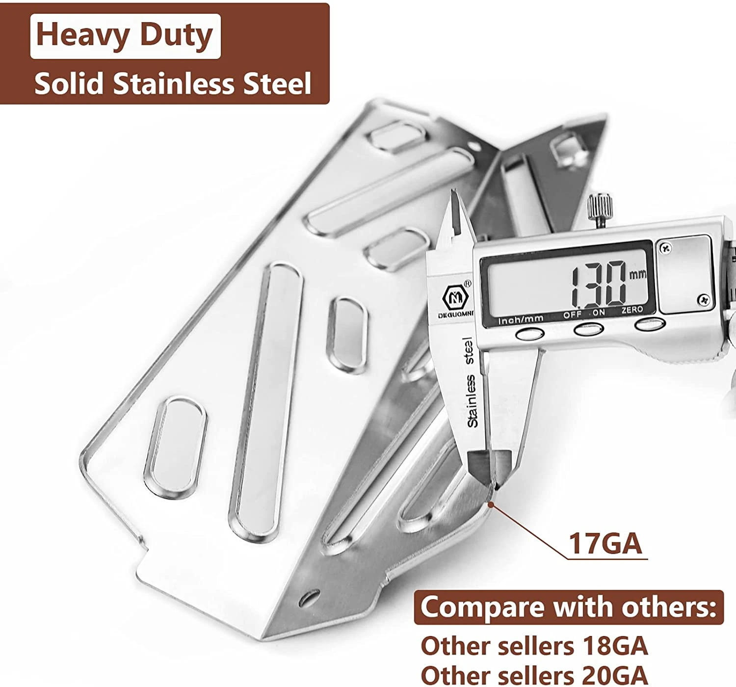 - DIMENSIONS : 12 1/2”x 4 1/4” / 12.5 x 4.25 Inch; PACKAGE: 6-Pack grill heat deflector; MATERIAL: Solid 17 GA stainless steel
