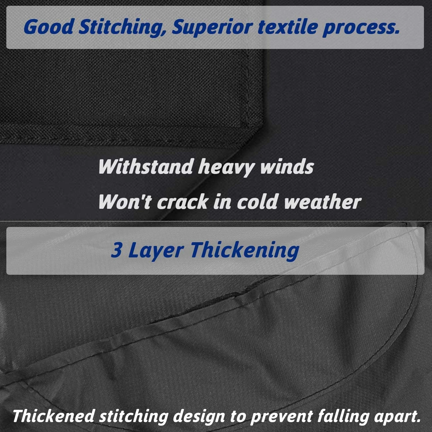 - 【FASTENING TAPE】 ► The velcro at the bottom can prevent cover from slipping or blowing off, especially during high winds and severe weather. 【DURABLE STITCHING】 ► With superior textile process–Precision Two-Thread Stitching, improving abrasive resistance, rip resistant and strength. It can withstand heavy winds and won’t crack in cold weather