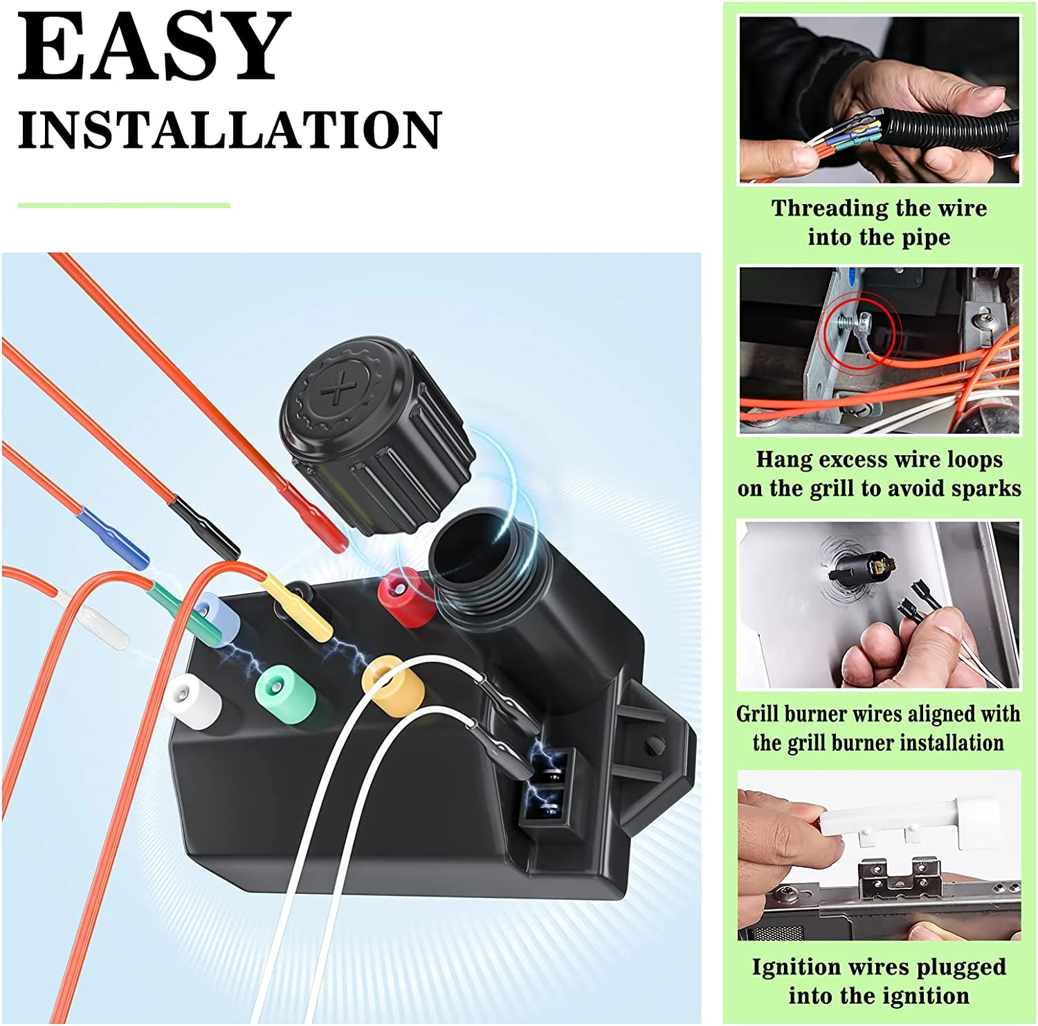 - The grill ignitor system Equipped with reliable electrode ignition components and an ignition module, ensuring safe and stable ignition process. Crafted with durable ceramic protection for long-lasting ignition performance. The special design effectively shields the ignition system from environmental factors, ensuring durability and reliability. Designed with convenient wire management, keeping your wiring organized and tidy. Say goodbye to tangled wires and enjoy a clean setup for your grill.