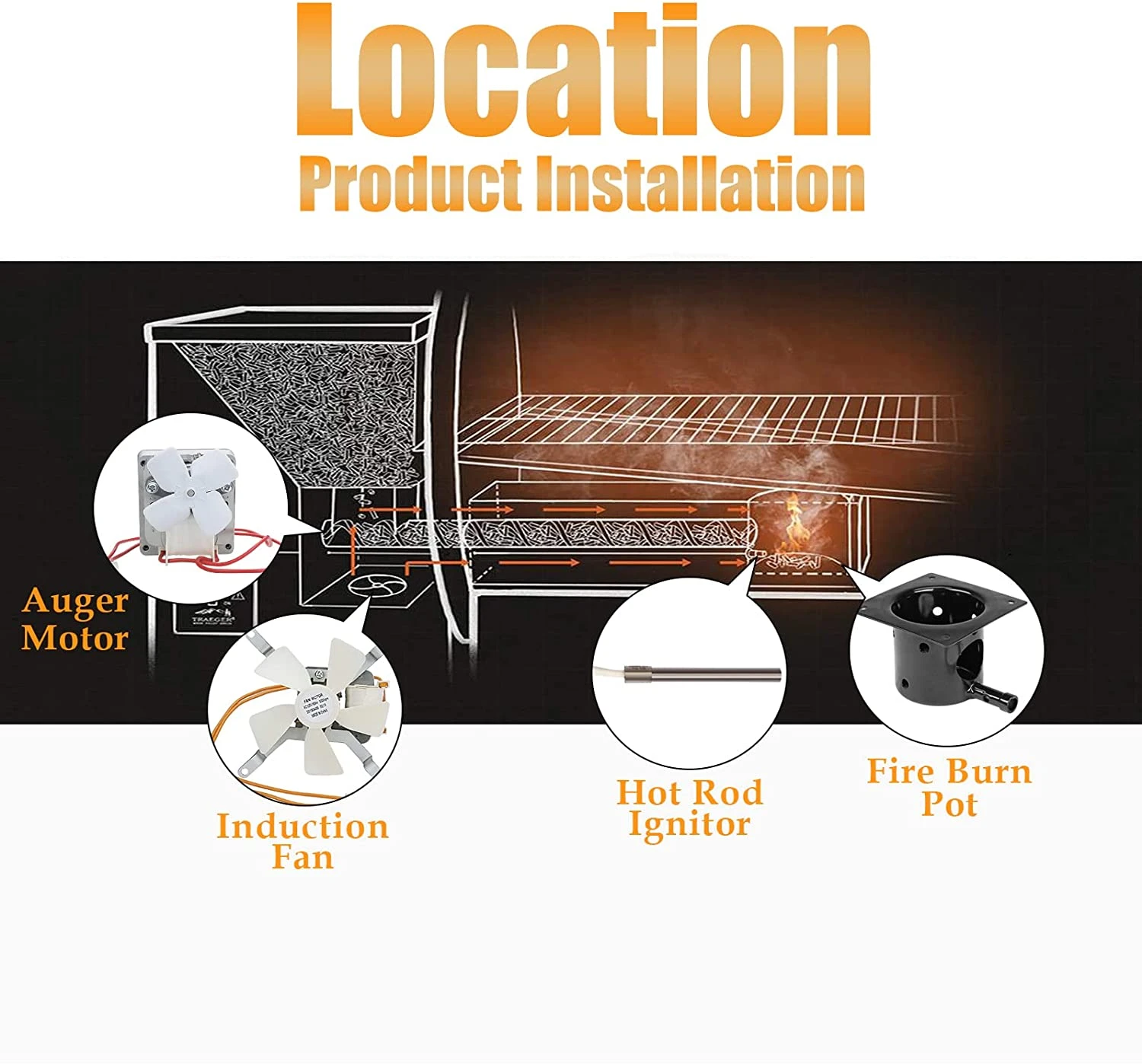 - Package: Includes 1 fire burn pot, 1 ash remover, 1 hot rod ignitor, 1 auger motor, 1 induction fan, screws and fuse