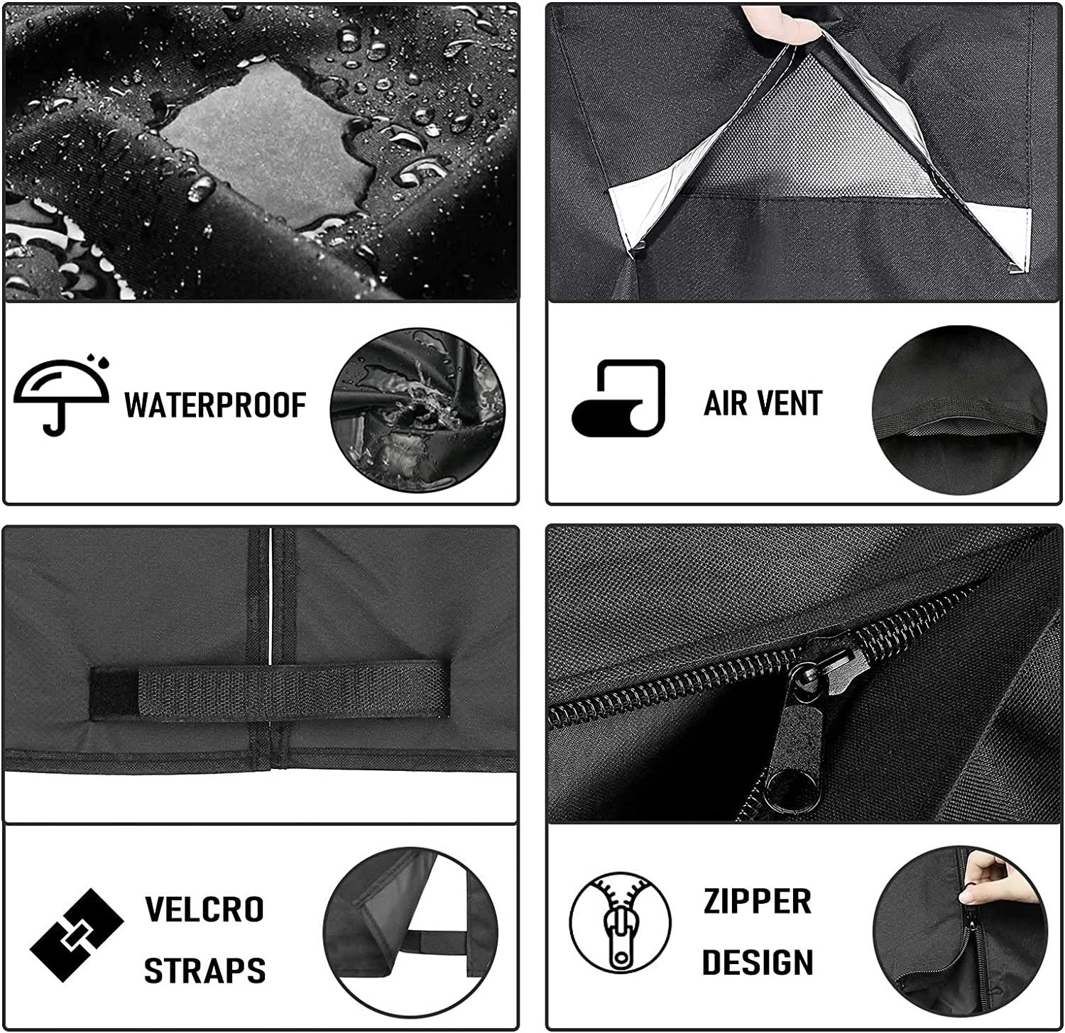 - 【Zipper & Straps】- Zipper can help you putting the cover on or off easier. Double straps at the bottom make it easy to keep the cover secure and to prevent cover from blowing off.