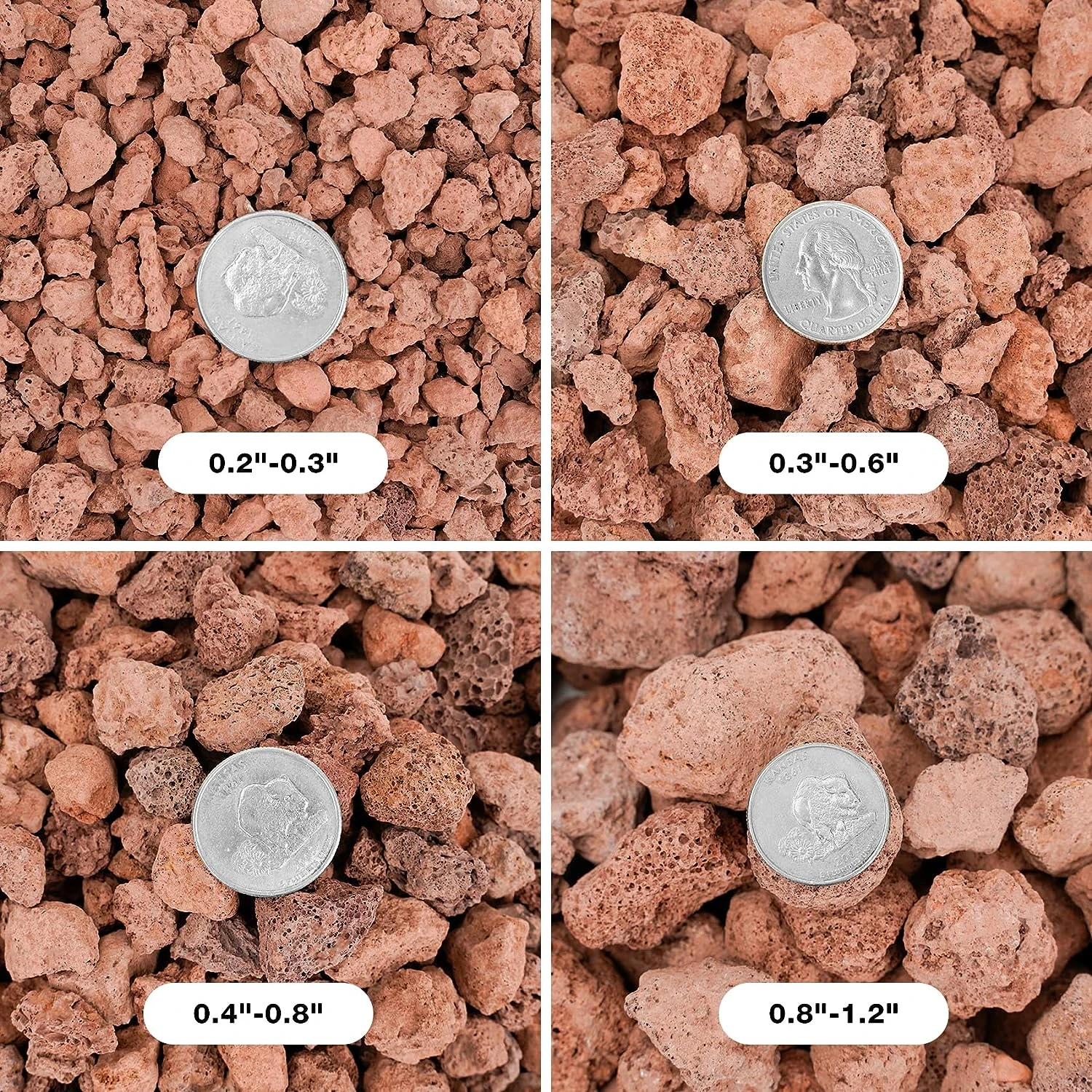 - 【A Variety of Sizes of Lava Rock for Your Choice】 – Sizes from 0.4″-0.8″, 0.8″-1.2″, 0.2″-0.3″, 0.3″-0.6″, 10 Pounds. Available in black or red with porous surface. No chemicals, fillers or colors added.