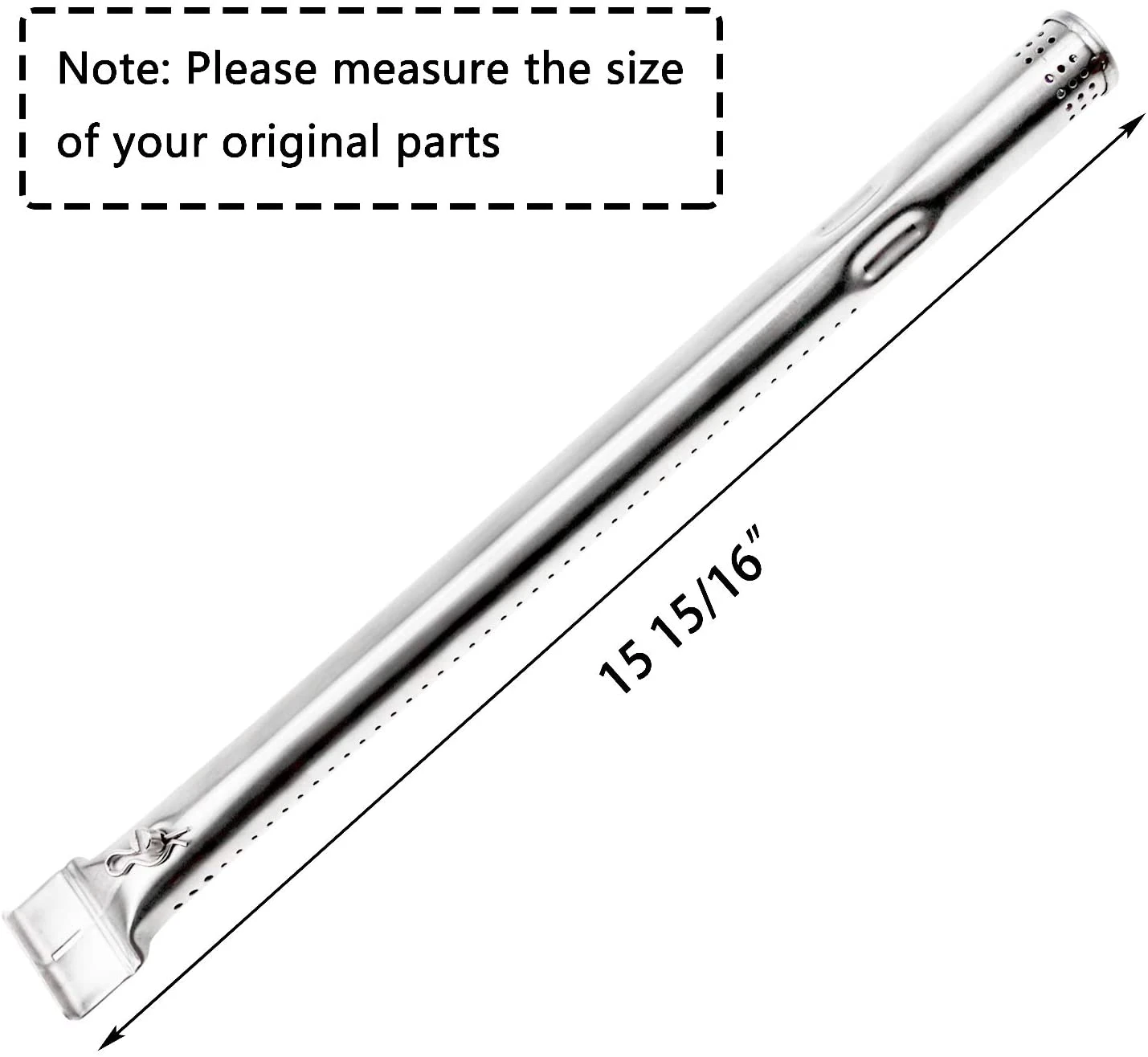 - NOTE: Burners are round head as the picture shown; Crossover tubes are 6 3/8 inch, if you want 7 7/16 inch; Pls measure your own before your bid otherwise these parts may not fit your grill, any question just contact with us by Email we will reply in 12 hours