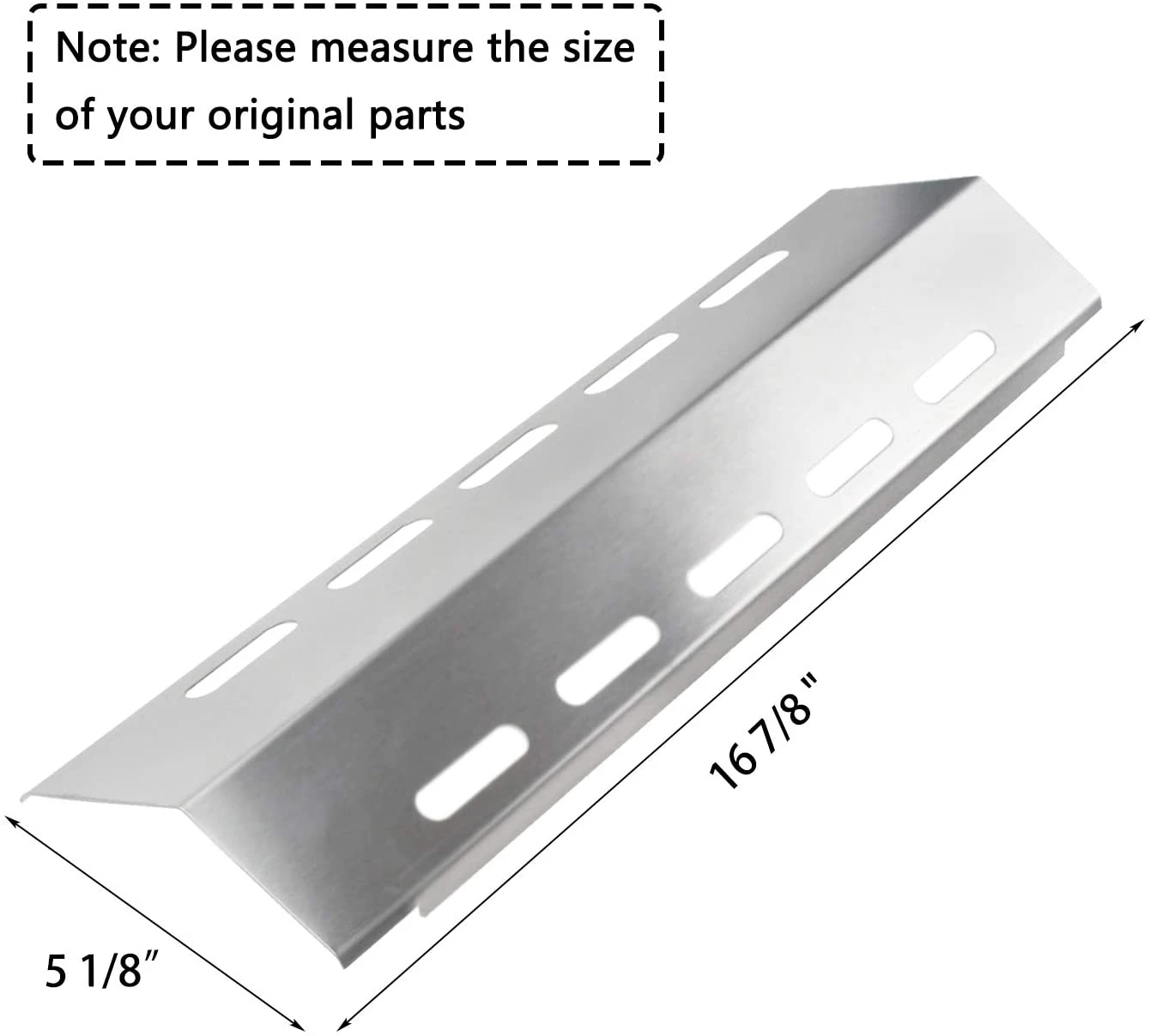 - Heat Plate Dimensions: 16 7/8″ x 5 1/8″; Material: Stainless Steel