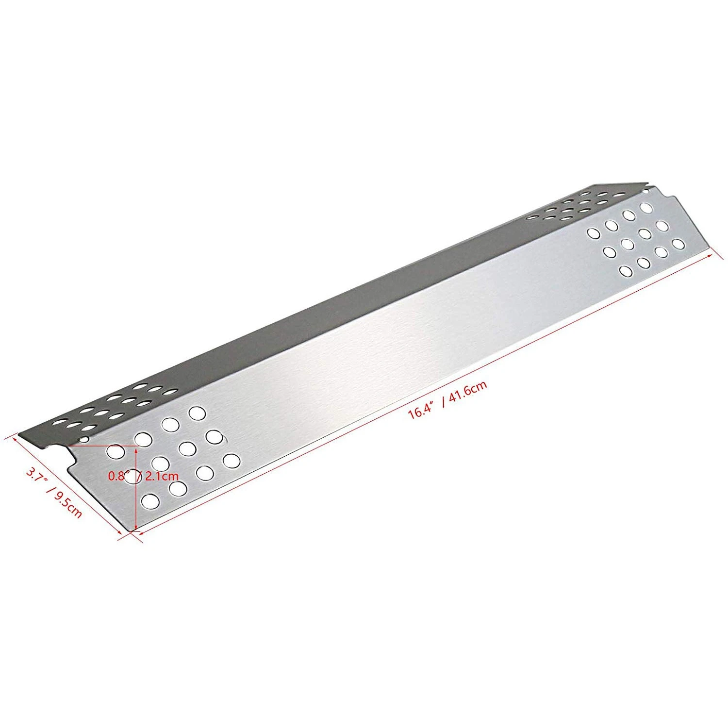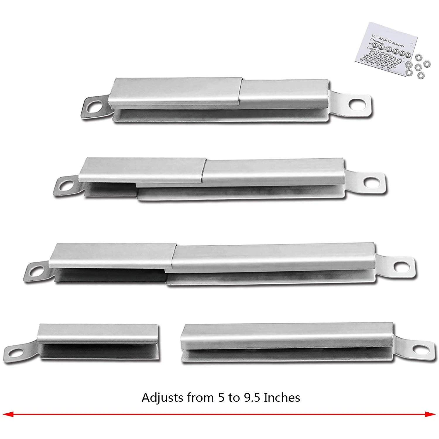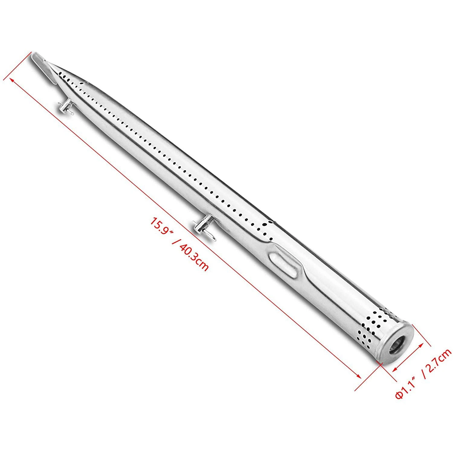 - Dimensions: Burners: length 15 15/16 inch x 1 inch, 40.48 cm x 2.54 cm; Heat Shield: 16 7/16 x 3 3/4 inch, 41.75 cm x 9.53 cm. Crossover tubes adjusts from 5 to 9.5 inch (from 12.7 cm to 24.13 cm).