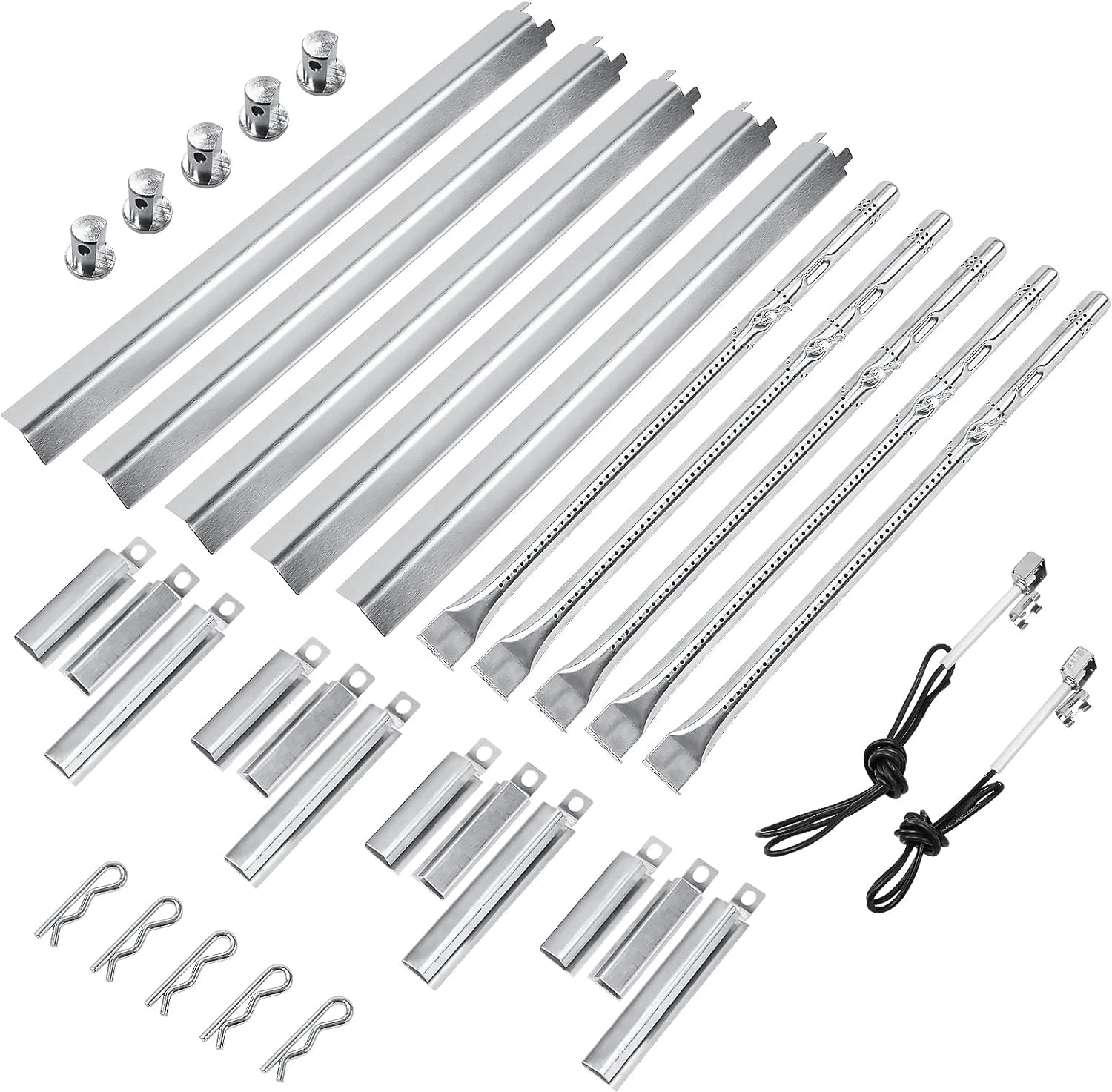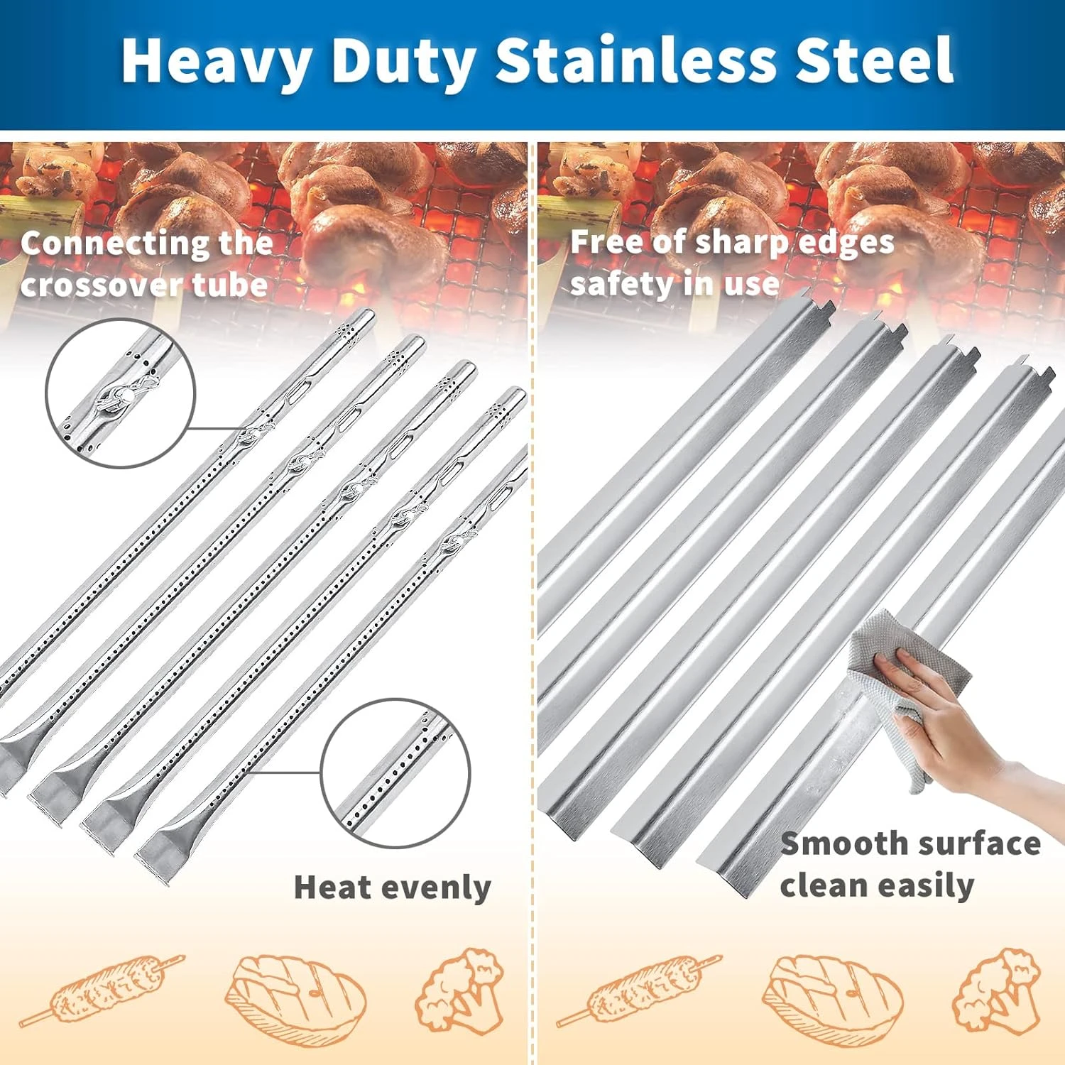 - 【Package】► BBQ Grill parts include: 6 x grill burner, original parts number: G327-2100-W1; 6 x heat plates, also called heat tents shields flame tamer burner cover. original grill parts number: G325-0002-W1; 4 x igniters; 5 x adjustable crossover tube: Adjust from 5 to 9.5 inch; 1x instruction and matching screw. ✅Material : Non-Magnetic Stainless Steel