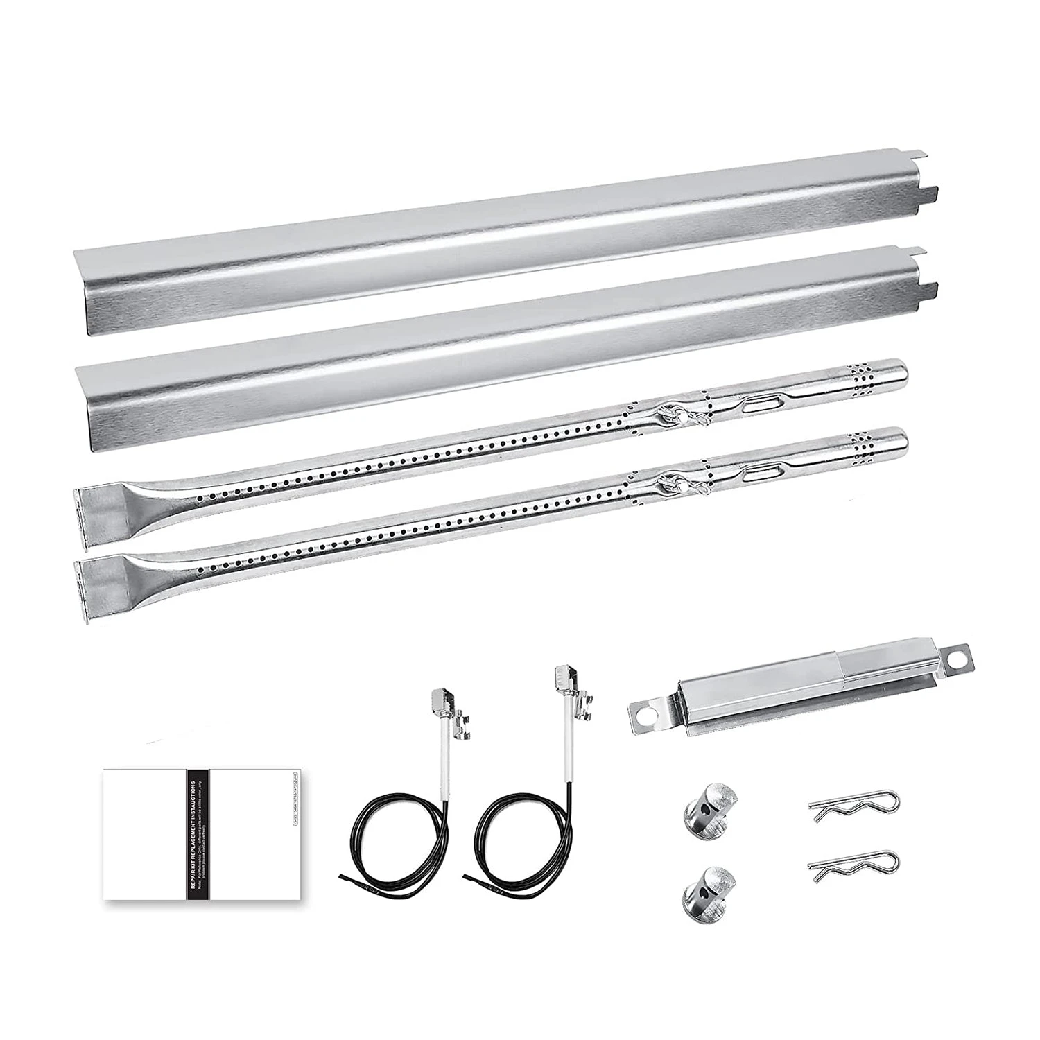 - 【Package】► BBQ Grill parts include: 2 x grill burner, original parts number: G327-2100-W1; 2 x heat plates, also called heat tents shields flame tamer burner covers, original grill parts number: G325-0002-W1; 2 x igniters; 1 x adjustable crossover tube: Adjust from 5 to 9.5 inch; 1x instruction and matching screw. ✅Material : Non-Magnetic Stainless Steel