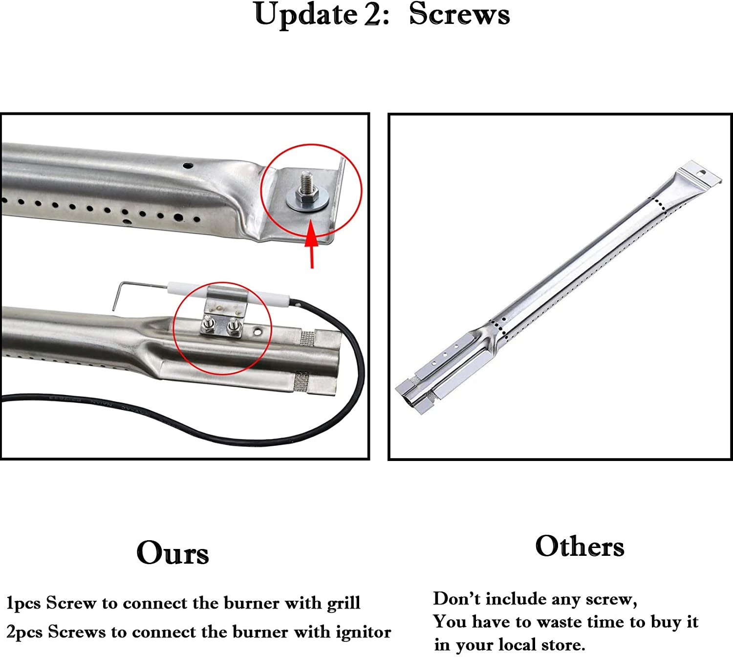- Package: This repair kit updated the side of burner, add 3 sets screws, 5pcs Ignitors.