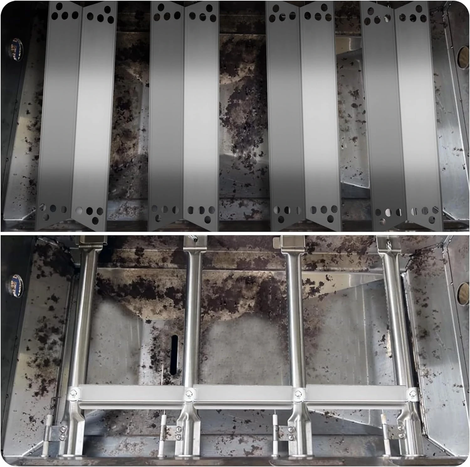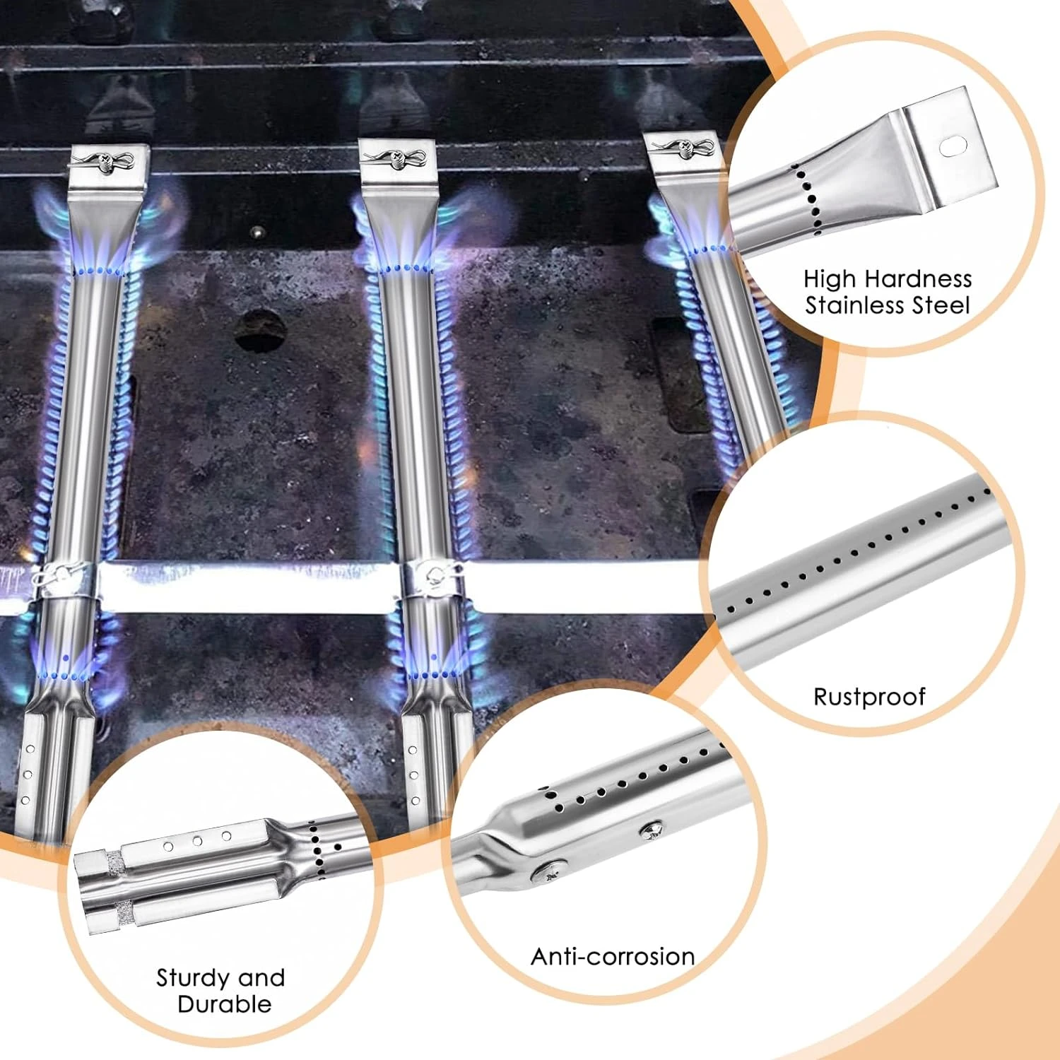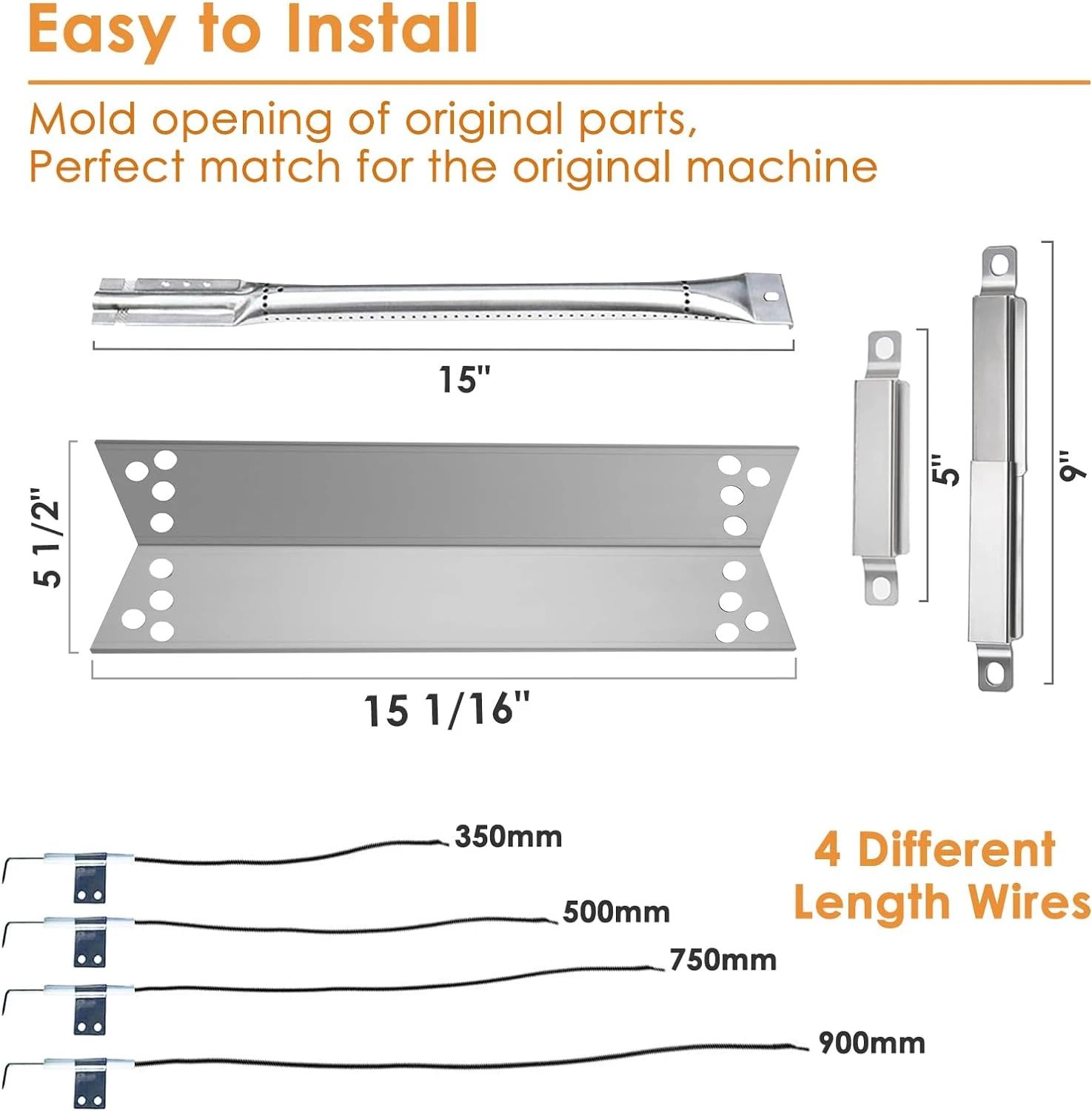 - Repalement Kit: Include 4pcs Burner, 4pcs Heat plate, 4 pcs ignitors, 3 pcs Adjustable Crossover. Make sure you measure the size of your original parts and compare with ours BEFORE you order.