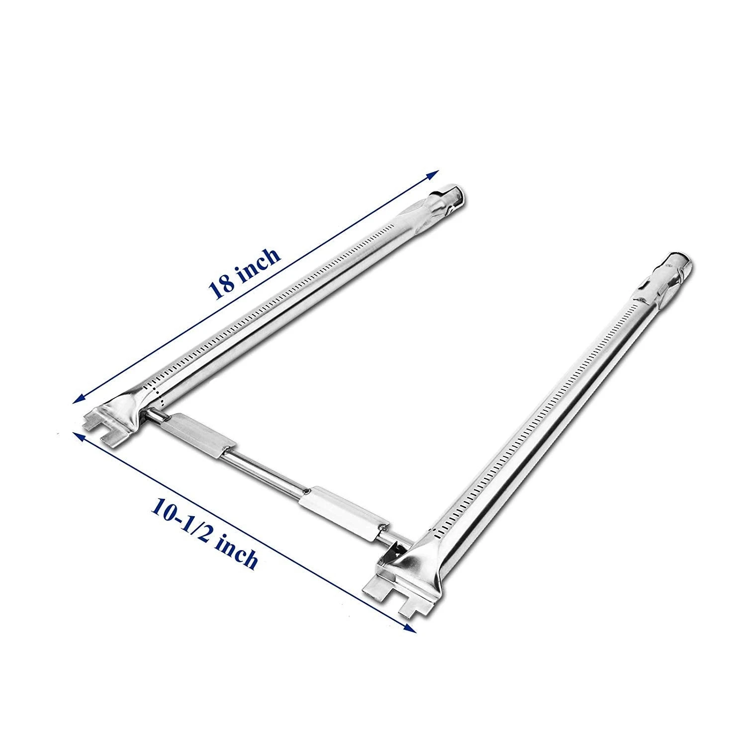 - Dimensions: Each main burner is 18 inches( 45.72cm), crossover tube is 10-1/2 inches( 26.67cm); Flavor bar: 15.3 X 3.5 X 2.5 inch (38.86 cm x 8.89 cm x 6.35 cm). 16GA thicker.