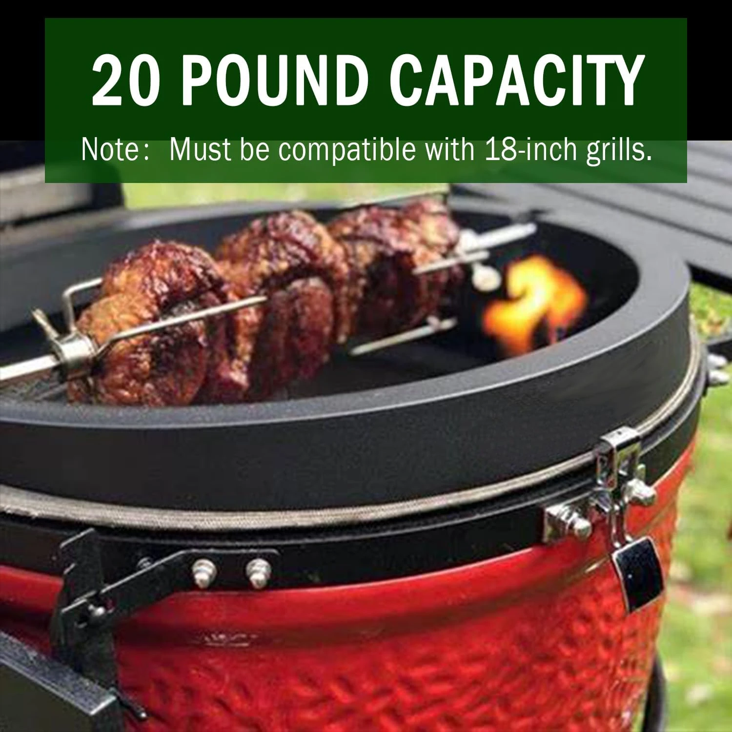 - 【Compatibility】The spit rod length is 18 inches, the rotisserie grill compatible with Kamado Joe Classic Joe series, Large Big Green Egg, and other round 18 inch kamado ceramic egg charcoal grills.