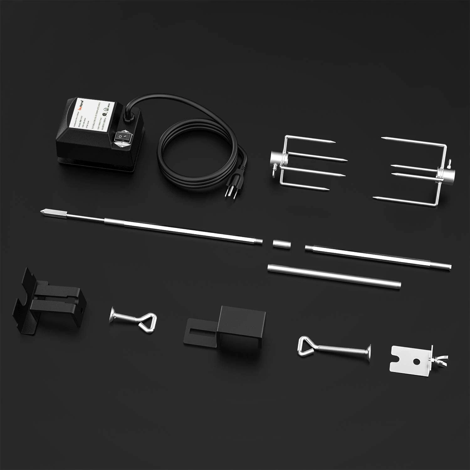 - Package: Including electric motor, 3/8” hexagon spit rod, 4 rotisserie forks (1 pair), bracket set, counterbalance weight and hardware.