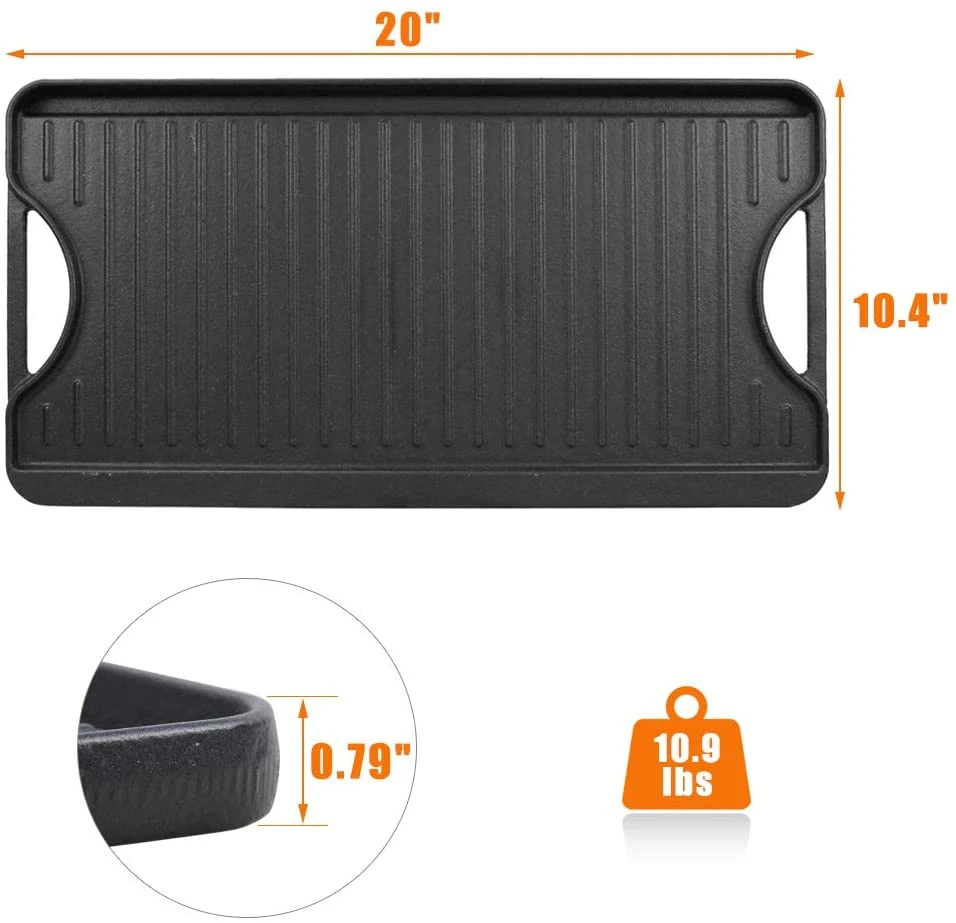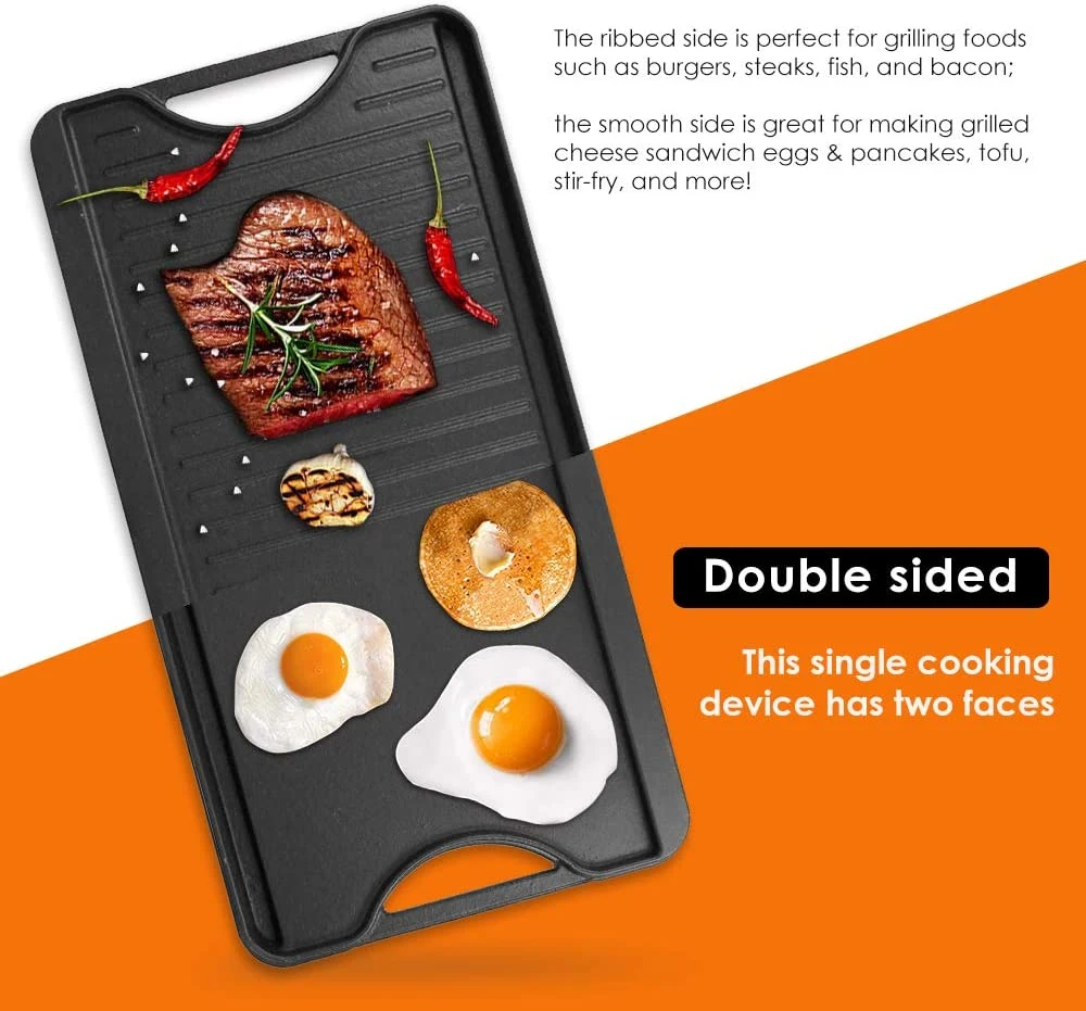 Be the first to review “Universal 20 X 10.5 Inch Cast Iron Cooking Griddle With Handles, Ribbed Side + Smooth Side Cooking For Grills, Campfires” Cancel reply